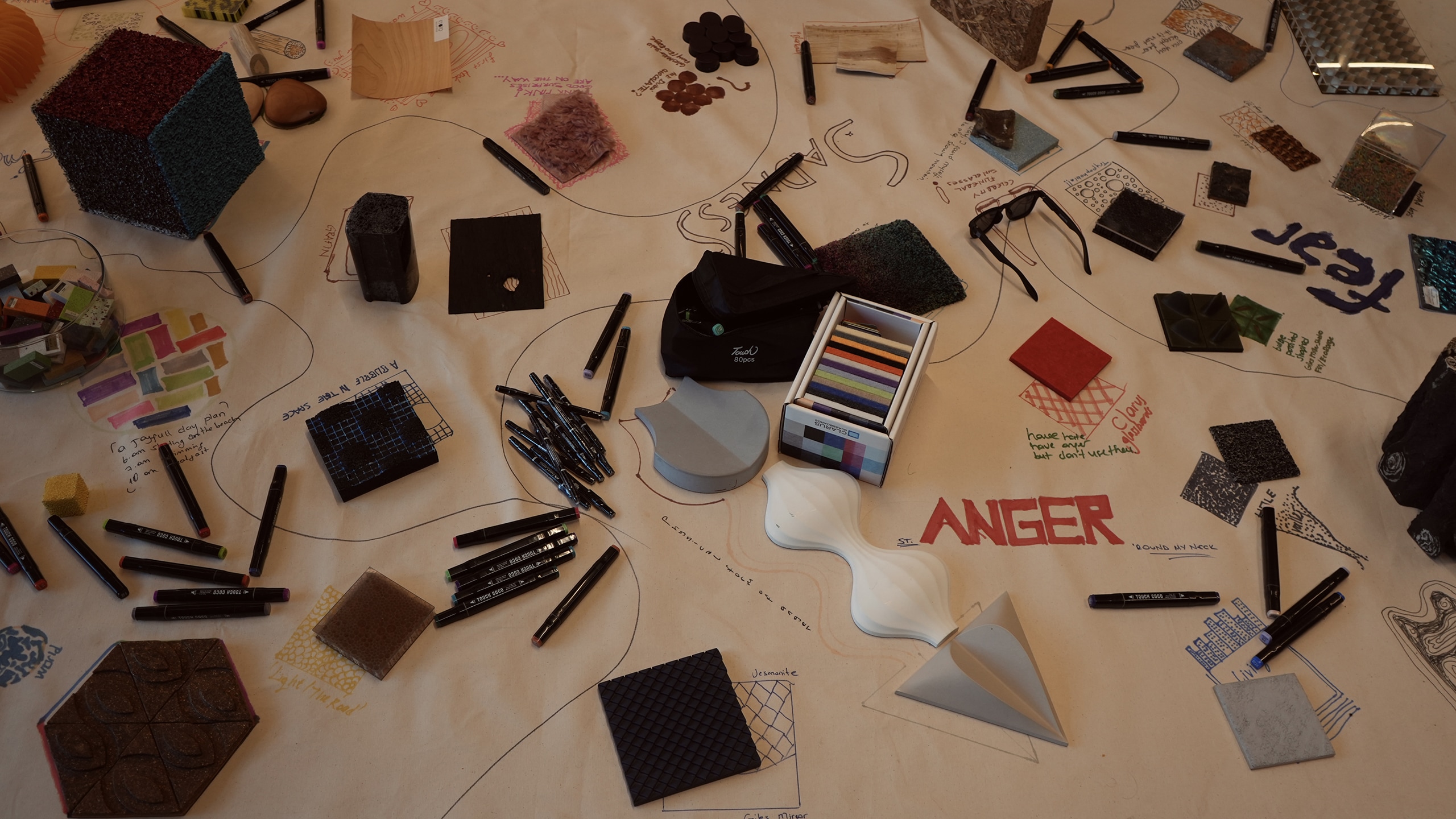 Through a process of emotional mapping, attendees paired materials with feelings such as joy, sadness, and surprise, transforming the experience into a vibrant, multifaceted exploration of human perception and design thinking. Some participants shared stories behind the materials, others sketched new concepts, while many added literary quotes or personal reflections, enriching the collective map with layers of meaning and connection.