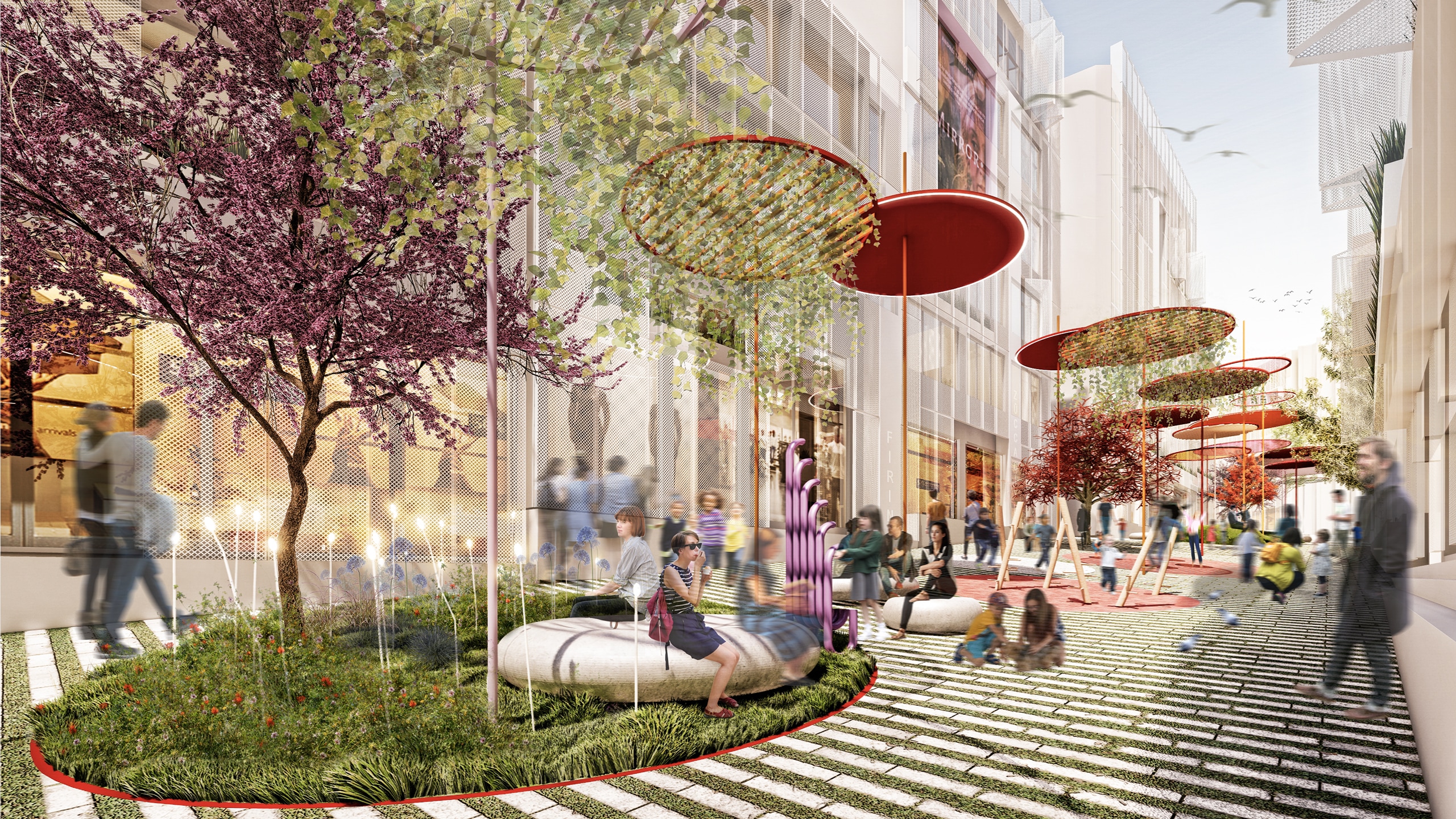 These nodes are strategically positioned to encourage pedestrian flow, create varied urban topographies, and stimulate social interaction.