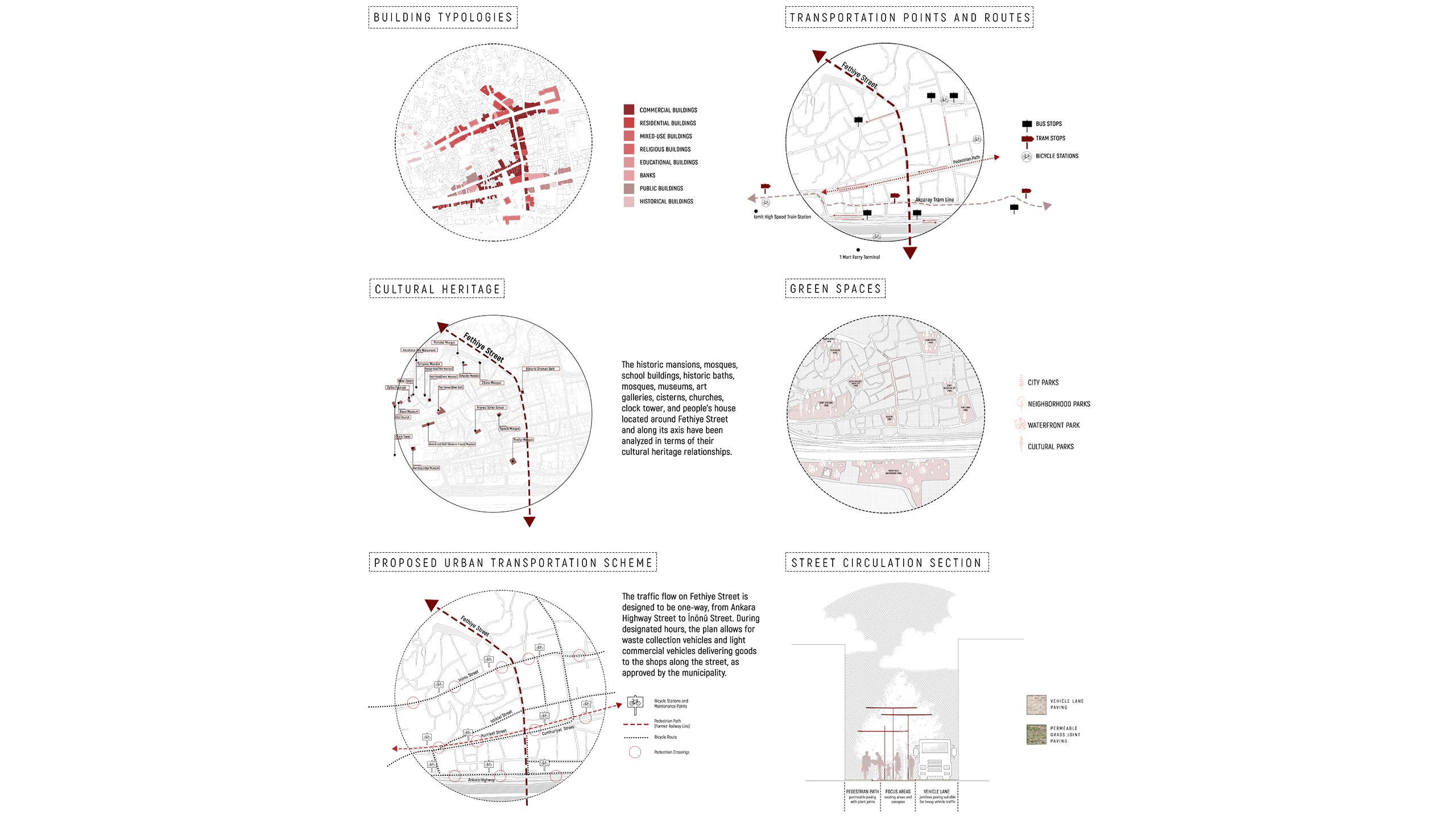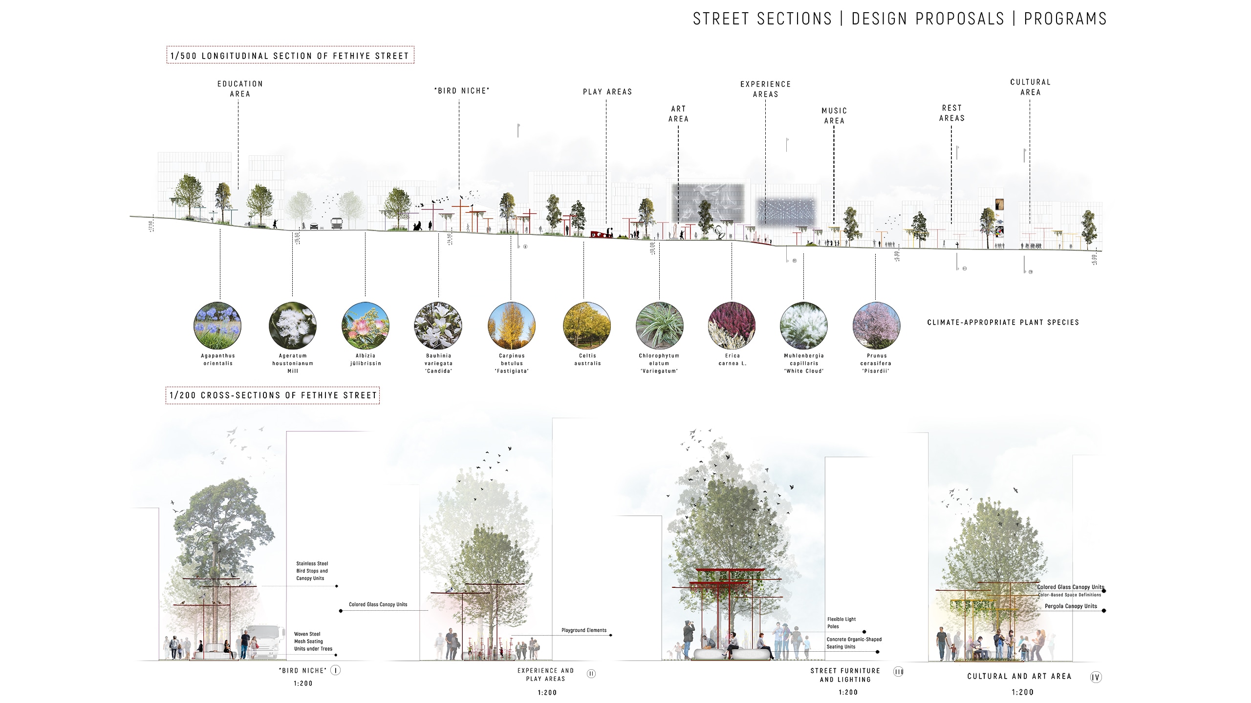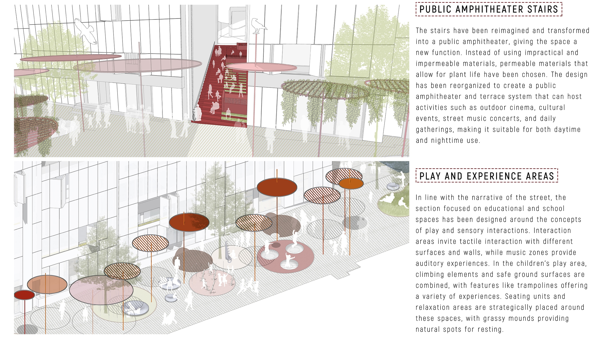 The project approaches Fethiye Street as a dynamic movement axis within the metropolitan fabric: a place where residents meet, pause, observe, and engage with culture. The main design intent is to enrich the street’s transitional nature with focal points for social, cultural, artistic, and recreational activities, while enhancing its architectural and landscape quality.