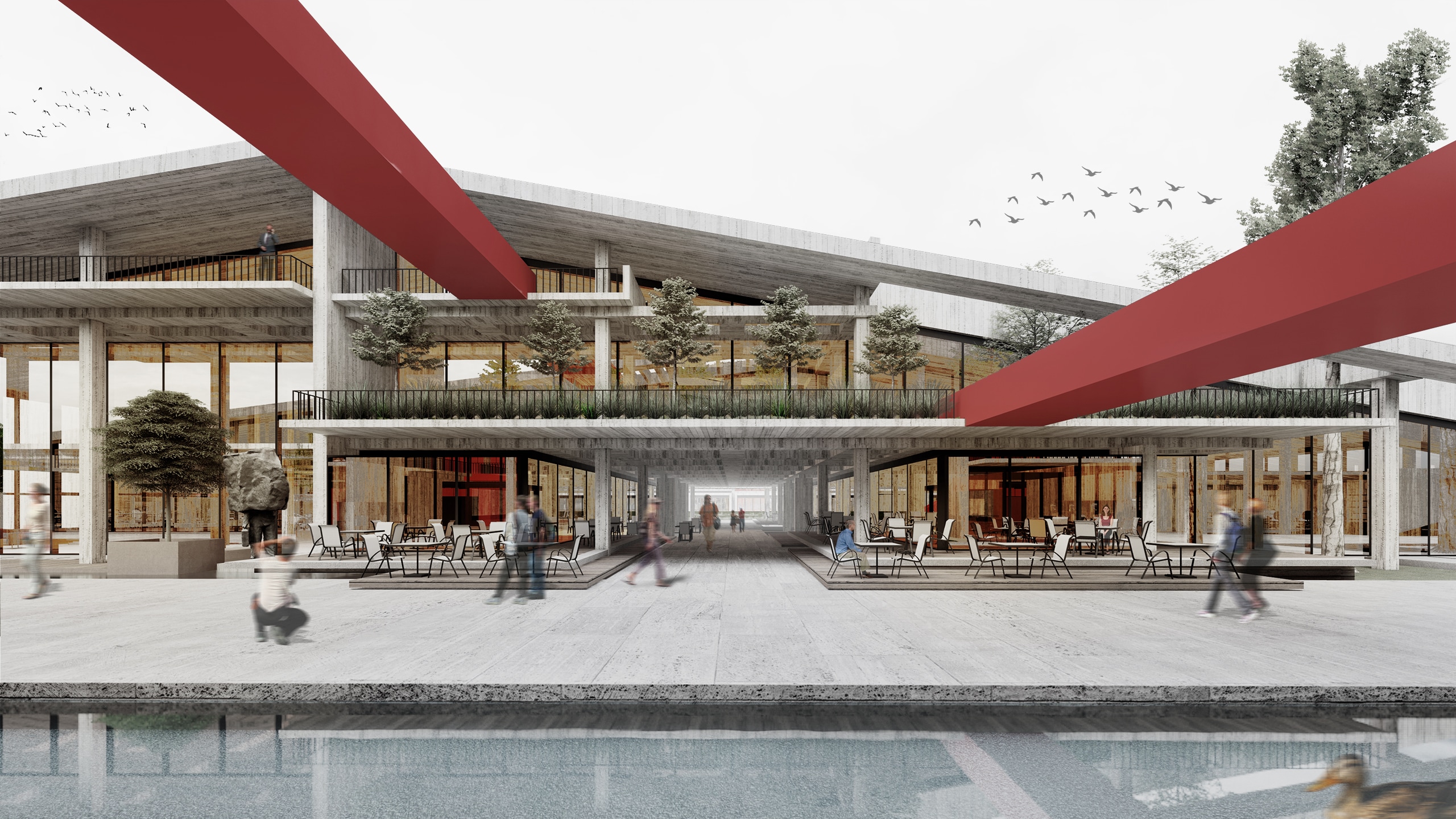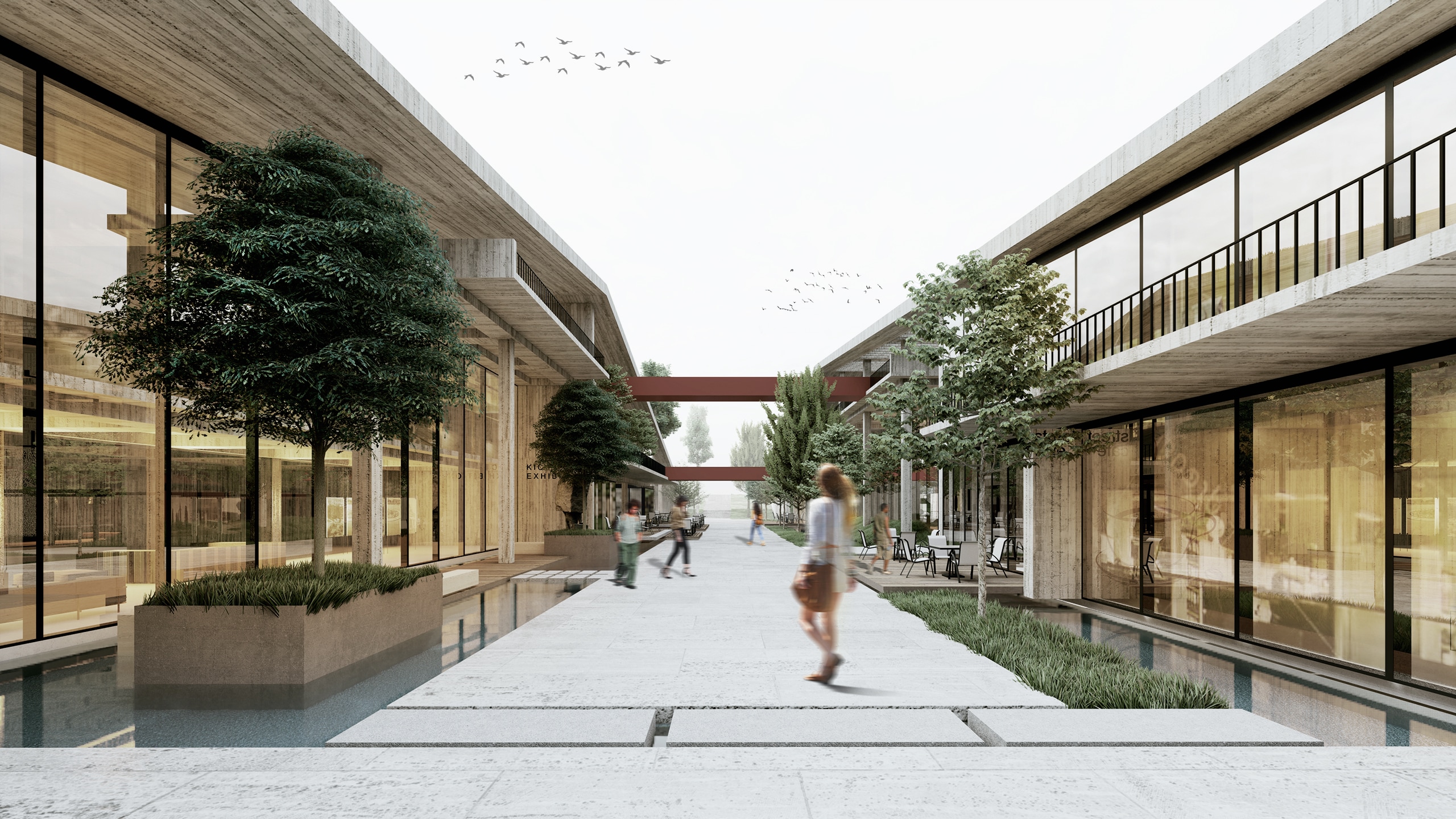 A central organizational element of the design is the creation of a primary urban spine: a connective framework that unites the existing Niemeyer structures and extends toward future development phases. This macro-scale reconfiguration includes transparent, transitional zones, introducing new exhibition areas and a curated art passage that animates the surrounding landscape.