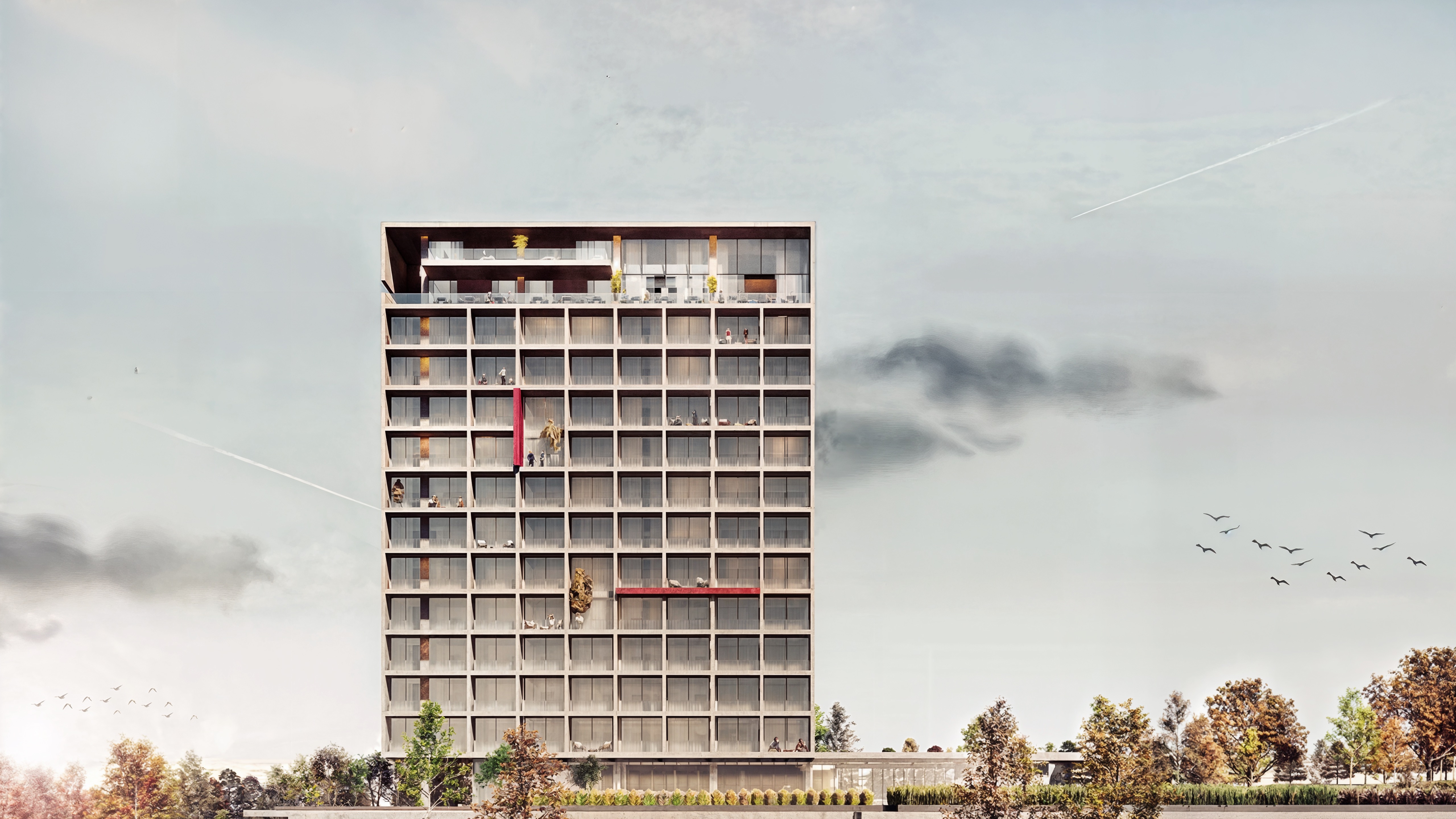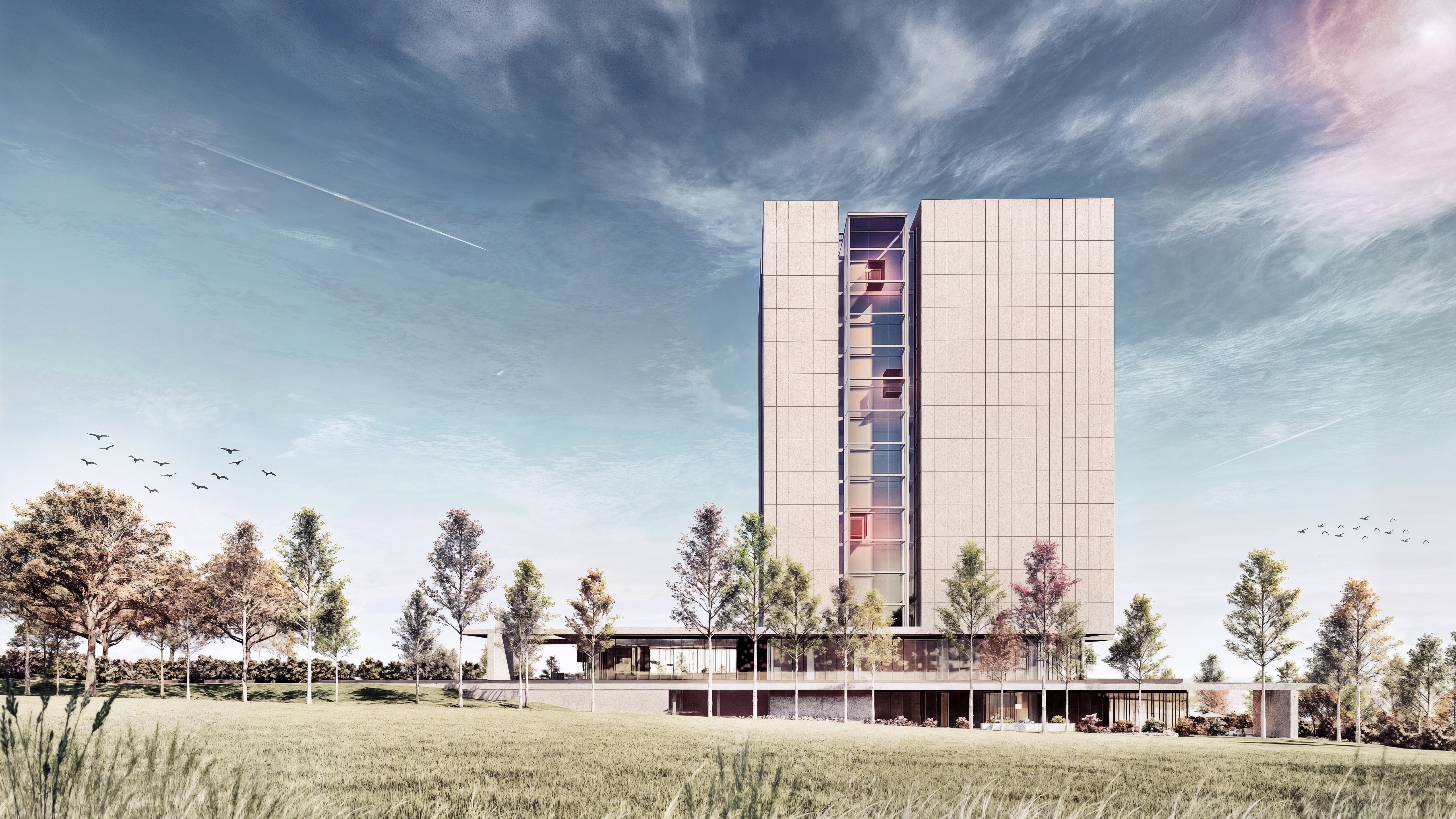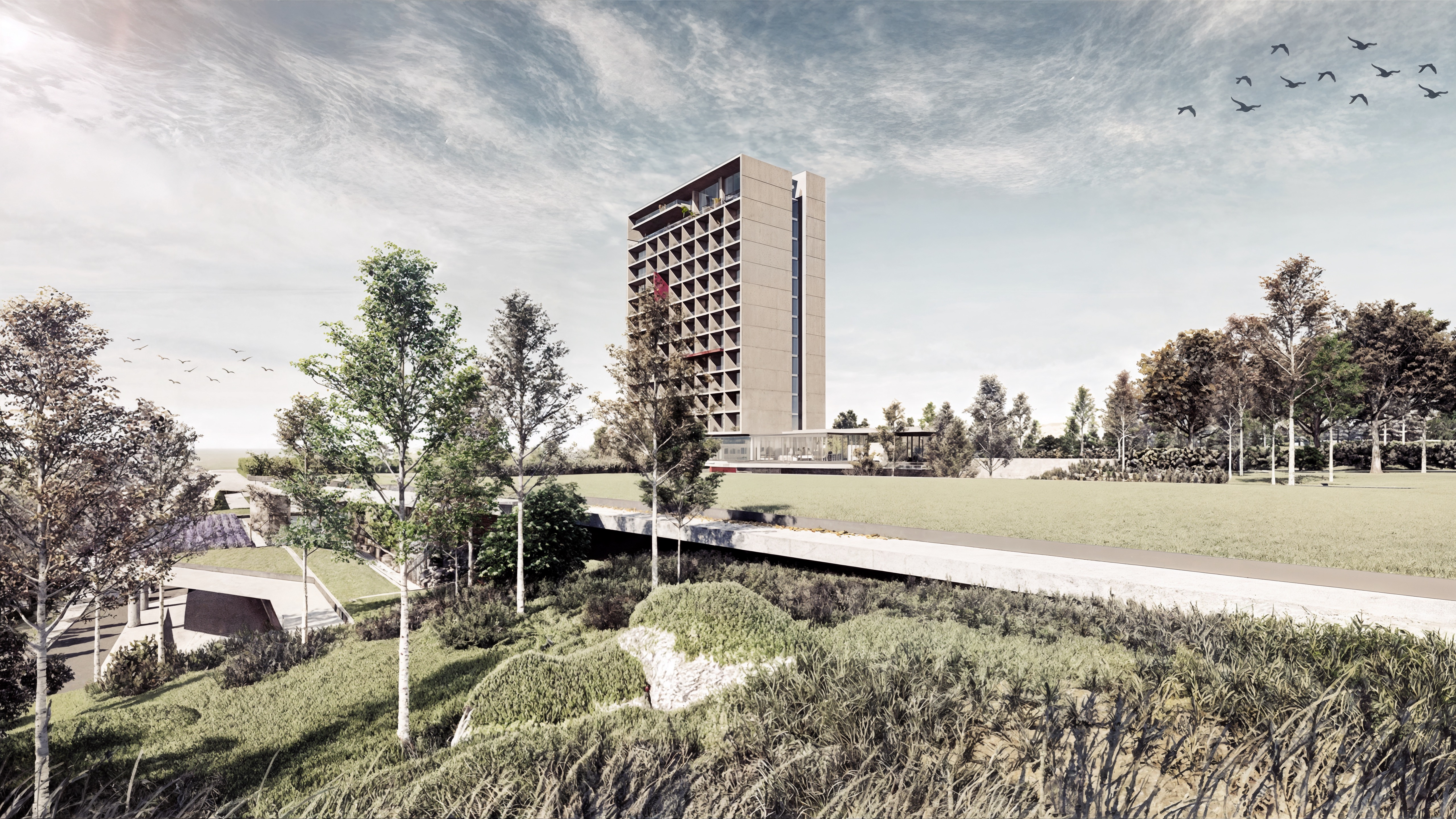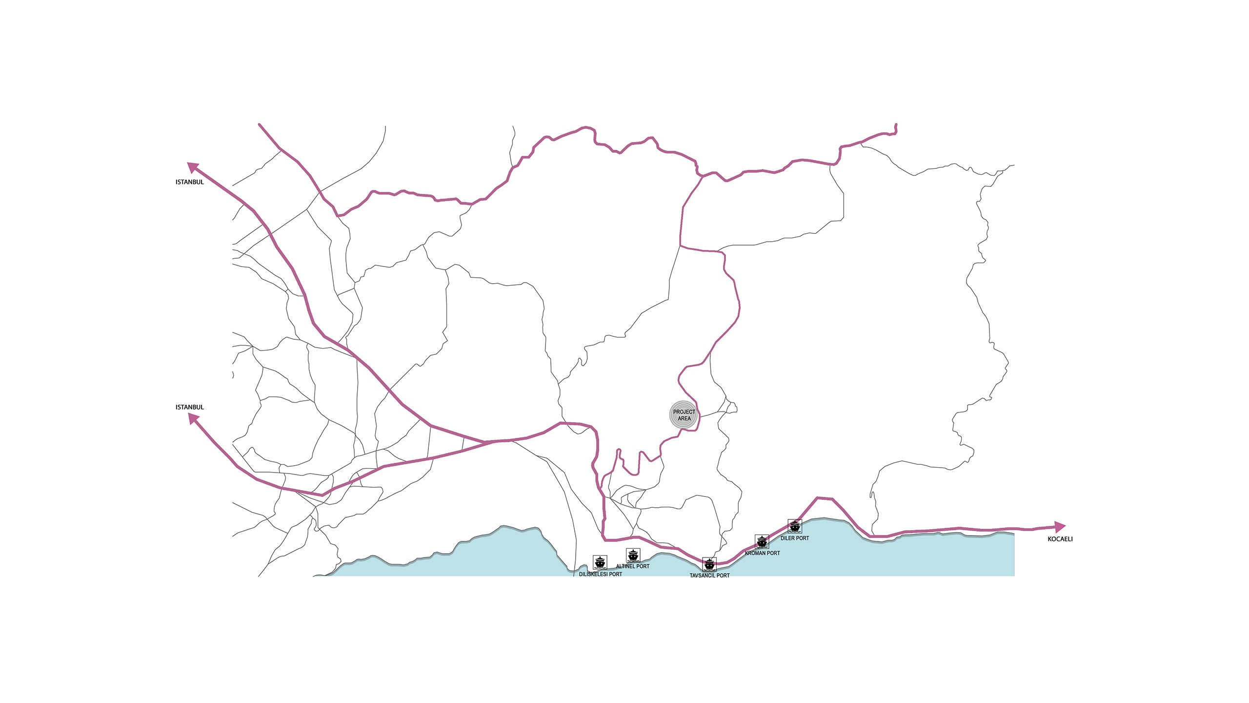 Rising from the base structure, the hotel tower is designed as a vertical landmark within the otherwise low-rise industrial context. Positioned at a high point on the site, the tower enjoys unobstructed views of the surrounding landscape and the distant Gulf of Izmit. Every guest room is oriented towards this view, with the tower’s single-loaded corridor layout ensuring panoramic vistas from each unit. This orientation not only enhances the guest experience but also adds a premium visual and environmental quality to the hospitality offering.
