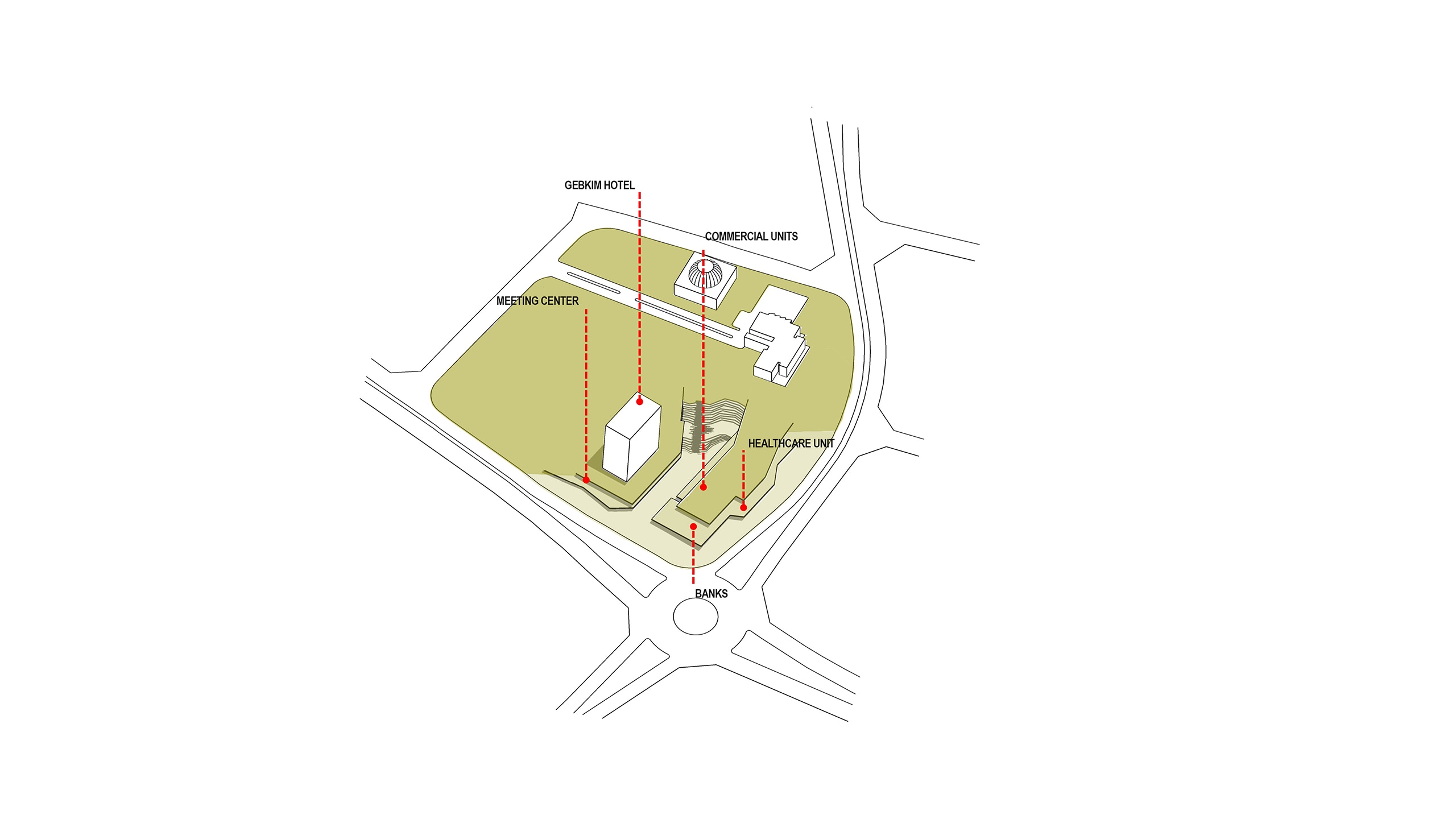 Located within the heart of the GEBKIM Organized Industrial Zone in Gebze, the GEBKIM Mixed-Use Project is a pioneering architectural development designed to meet the evolving needs of an industrial community. Commissioned by the GEBKIM administration, the project aims to provide a high-functioning and integrated environment where business, hospitality, healthcare, and commerce converge - bringing life and activity to a predominantly industrial setting.