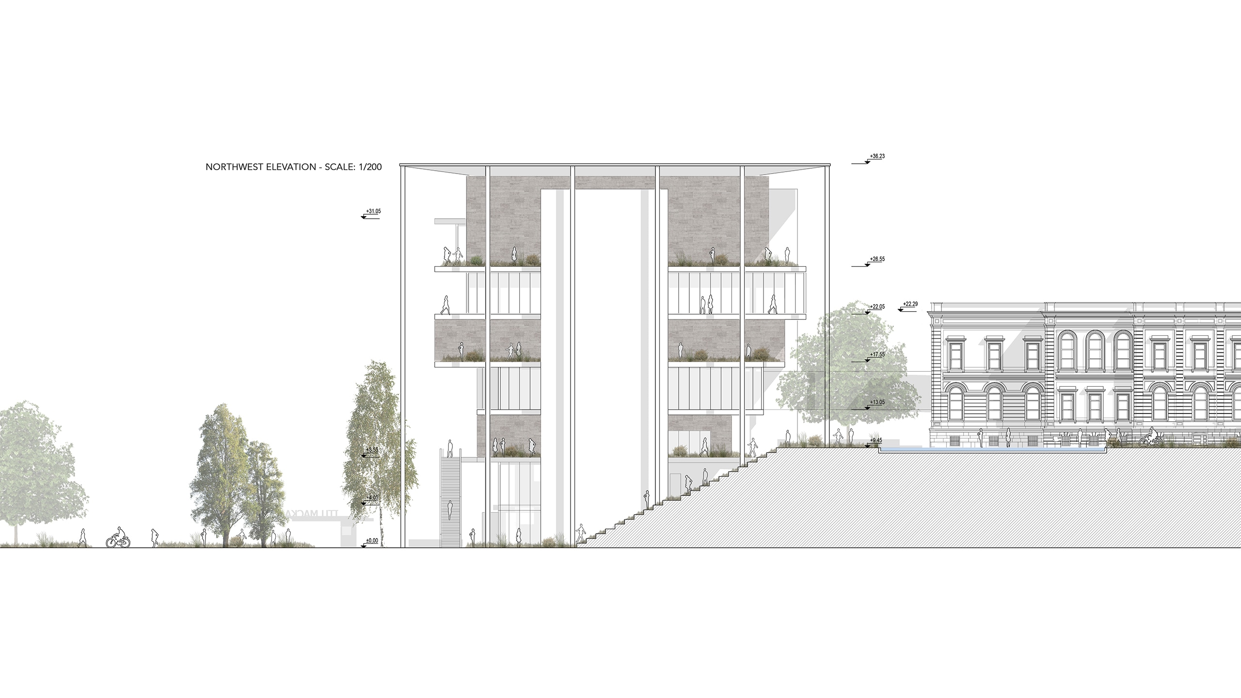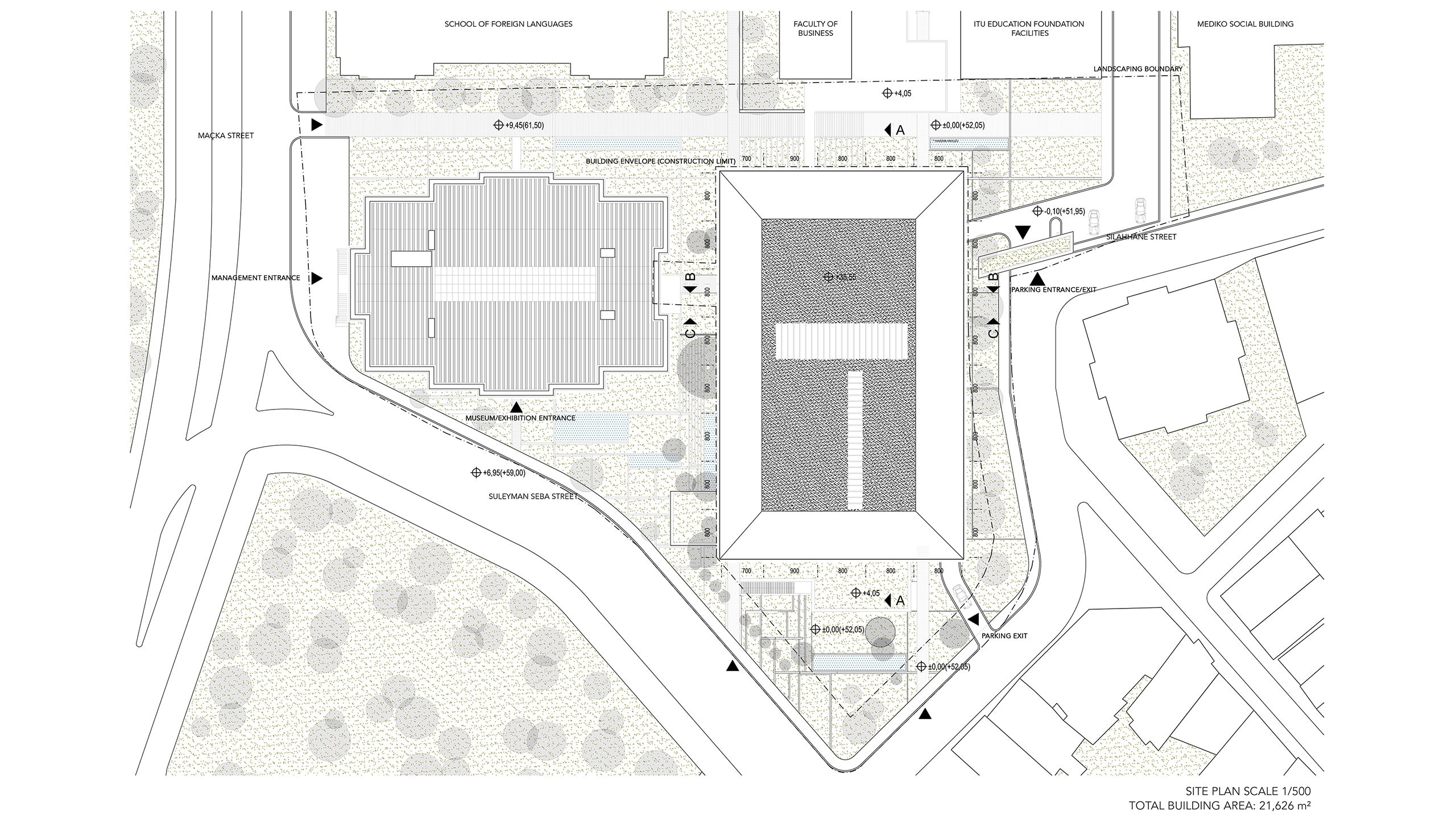 The project connects seamlessly with Macka Democracy Park to the west and opens up to Suleyman Seba Street through pedestrian pathways, allowing access from every direction. The surrounding urban texture, public life, and green infrastructure are all considered in the massing and site planning.