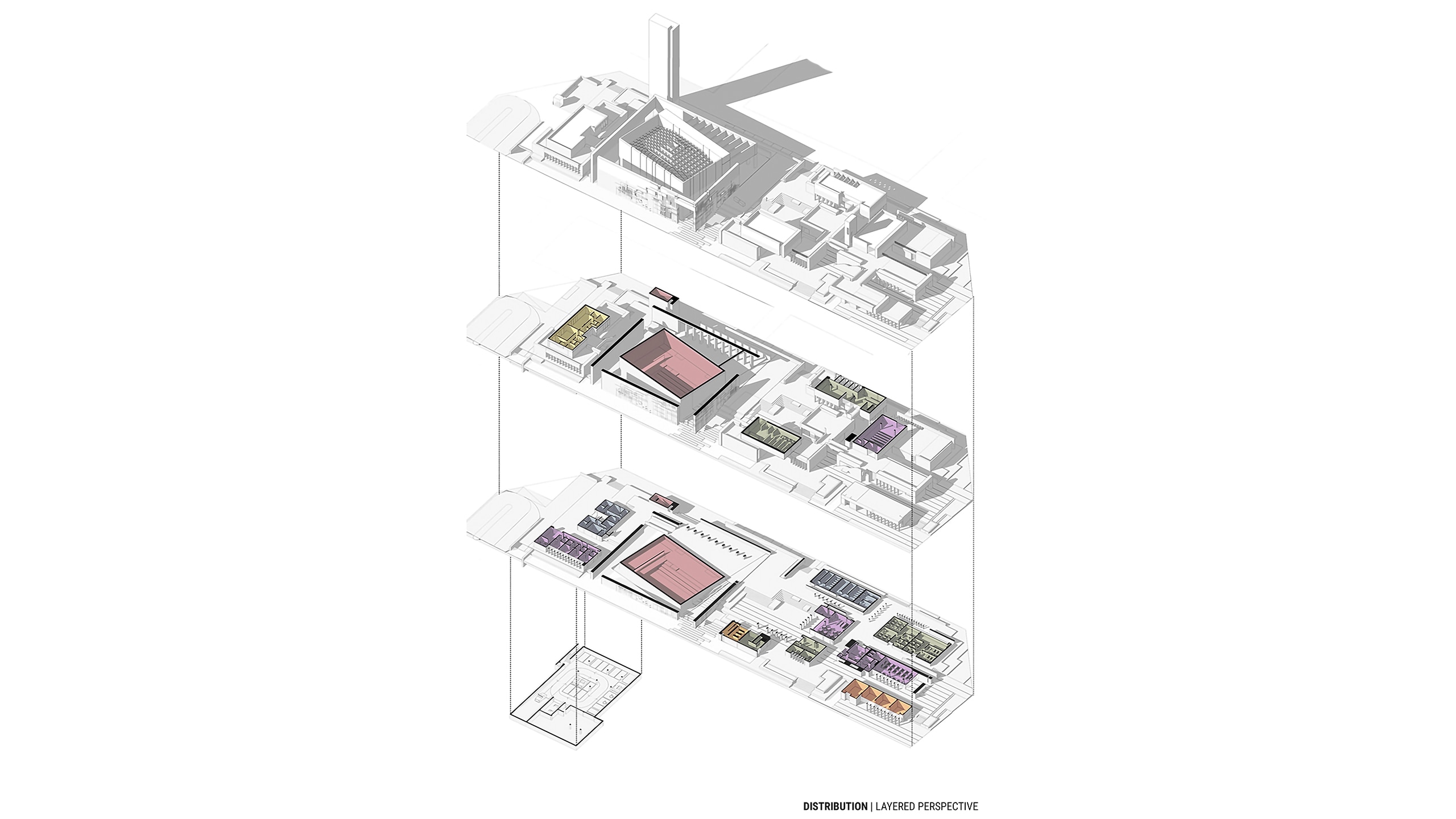 The Qur’an school is conveniently located near the mosque on an education street, shaded and accessible for students. The commercial street, which connects to the larger urban fabric, integrates shops while supporting the mosque’s economic sustainability.