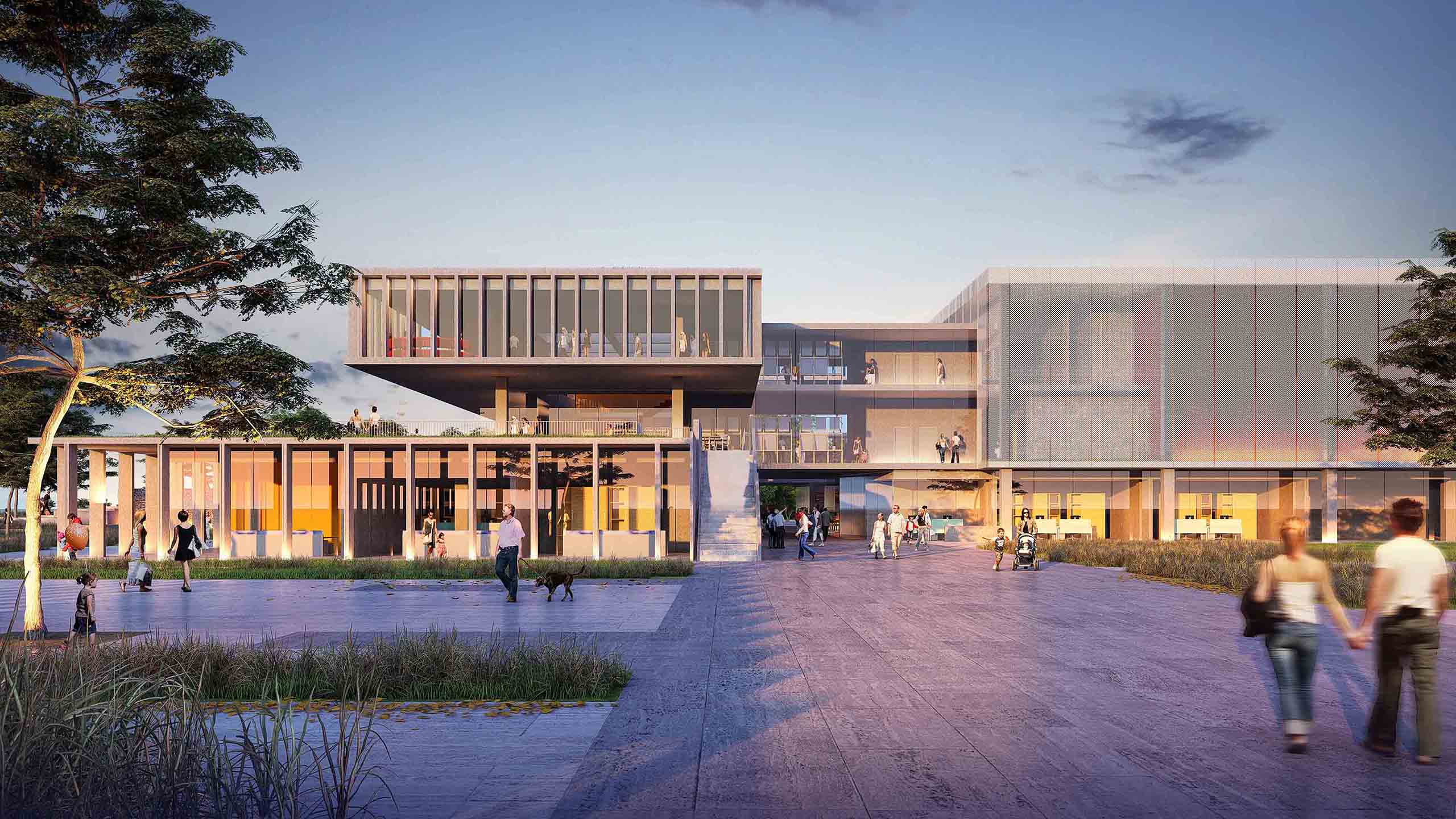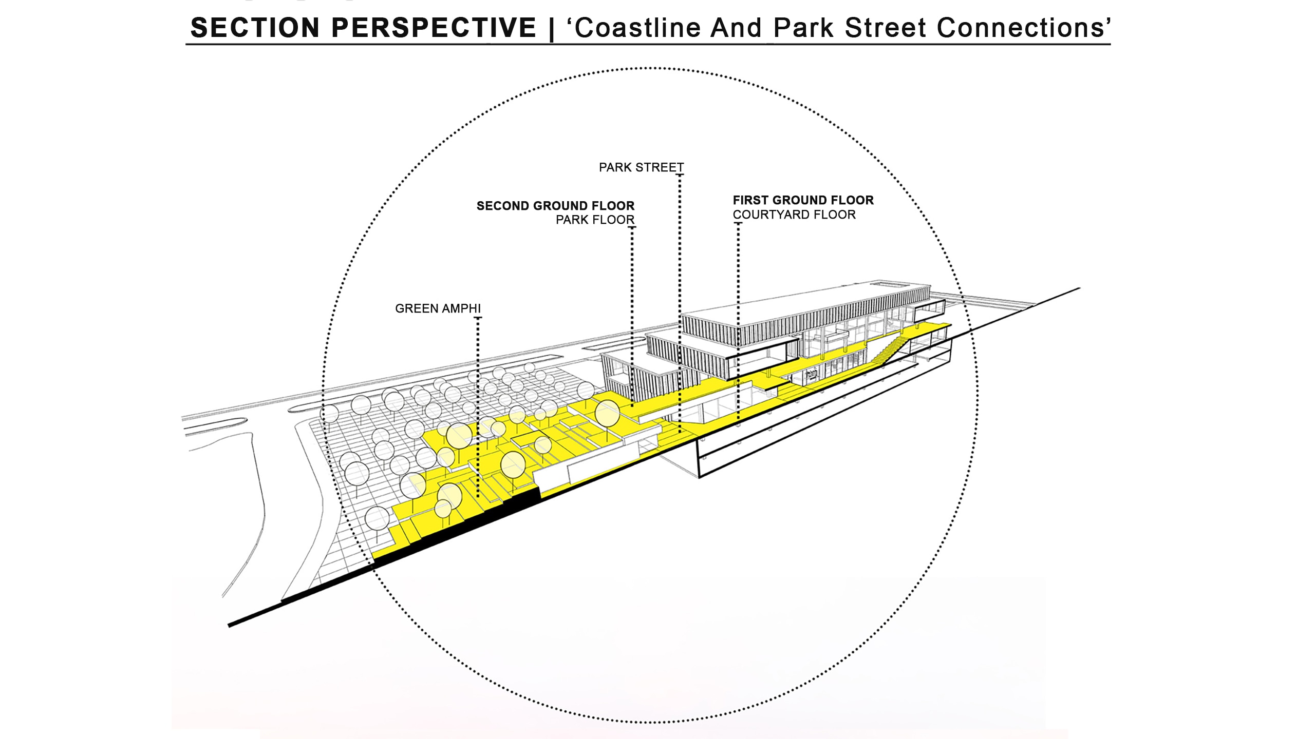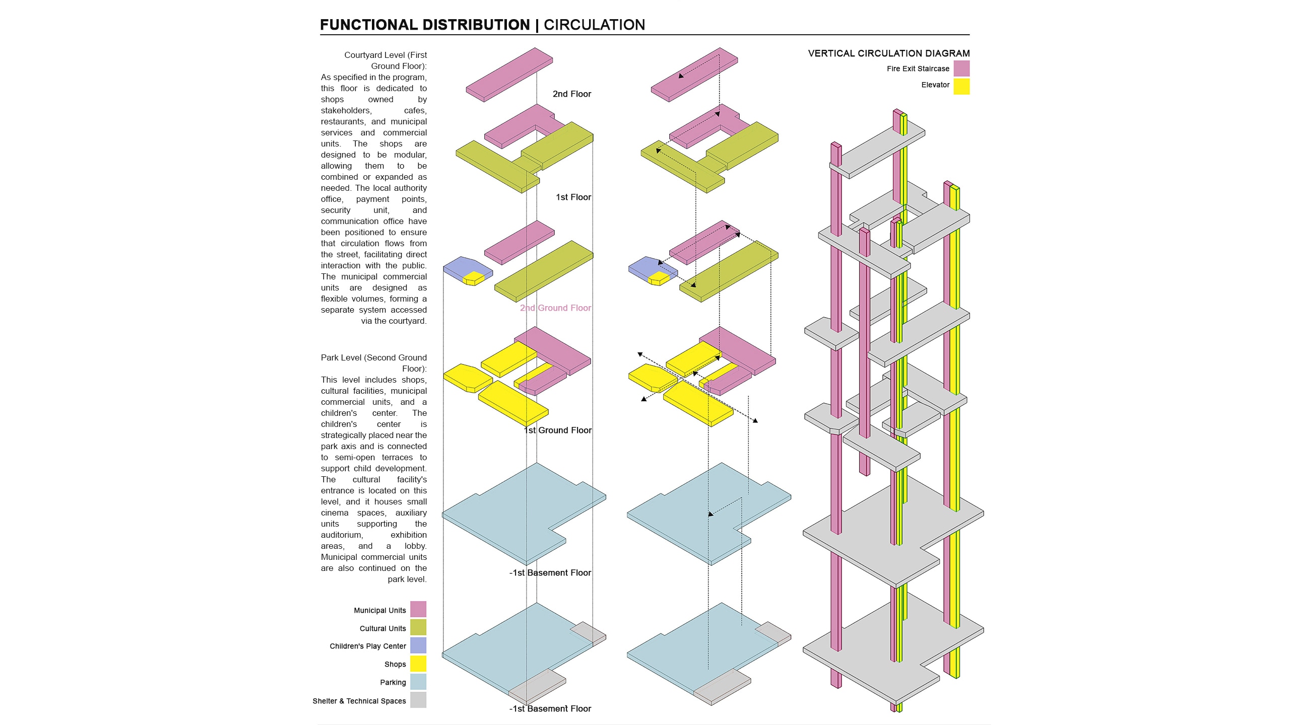 The design encourages continuous street-level activity, combining commercial vitality with civic engagement and green integration. The structure becomes an extension of the park, blurring boundaries between built space and open landscape.