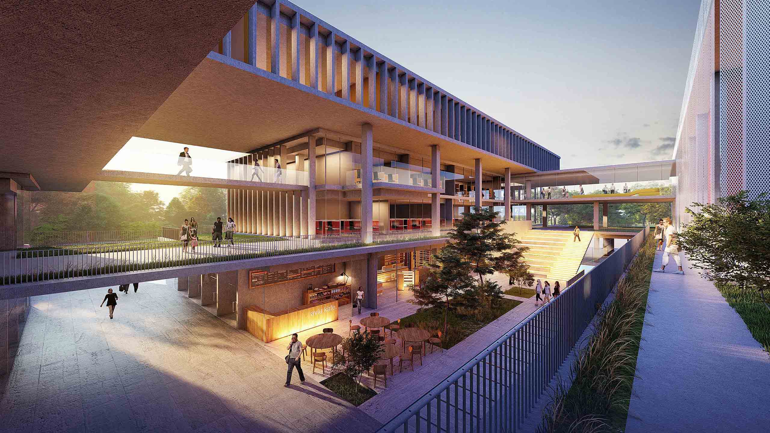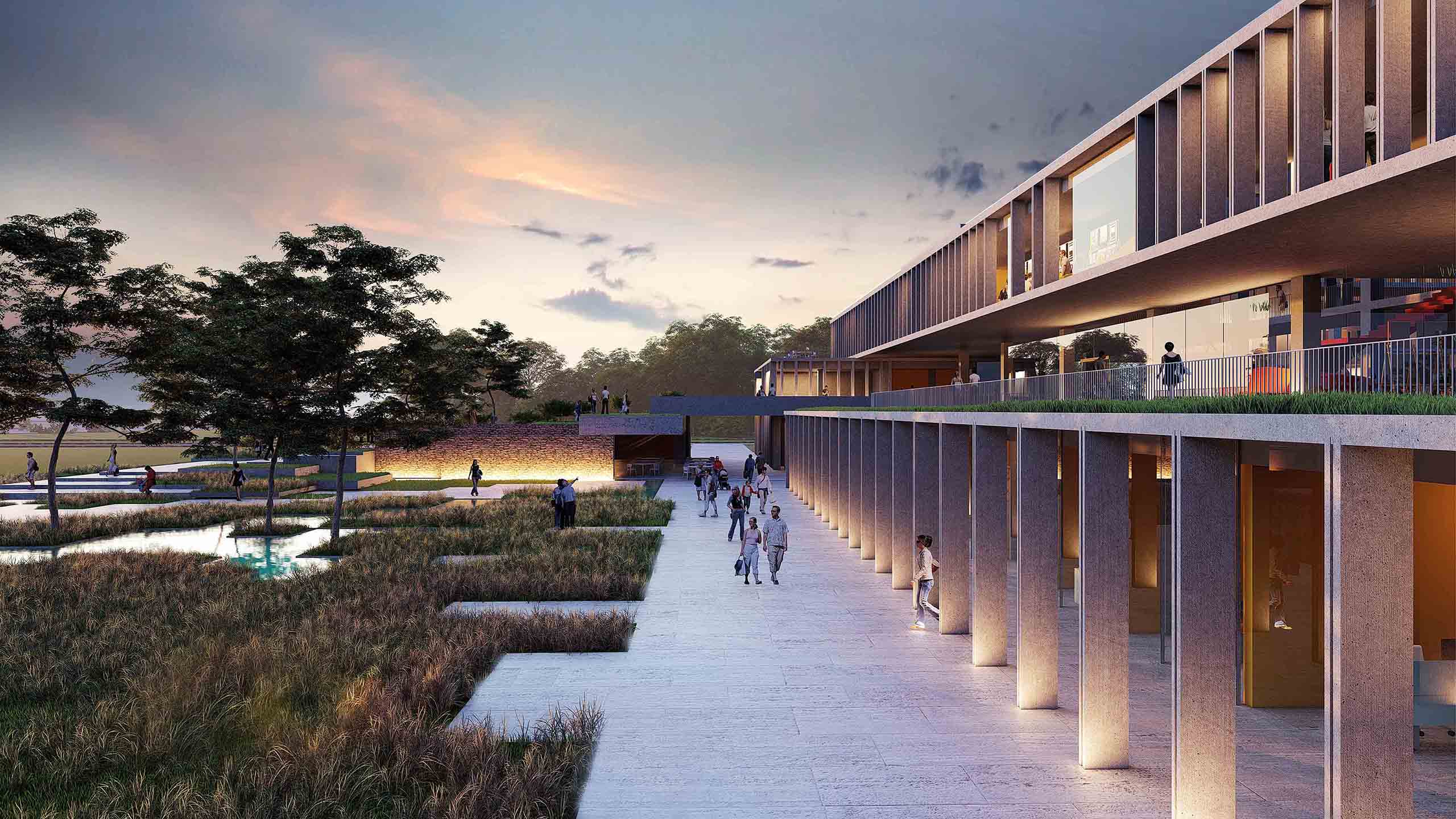 The architectural approach uses layered public levels, topographic transitions, and organic circulation paths to ensure integration with surrounding landscapes. Semi-open spaces, terraces, and arcades improve passive climate control, supporting long-term sustainability goals.
