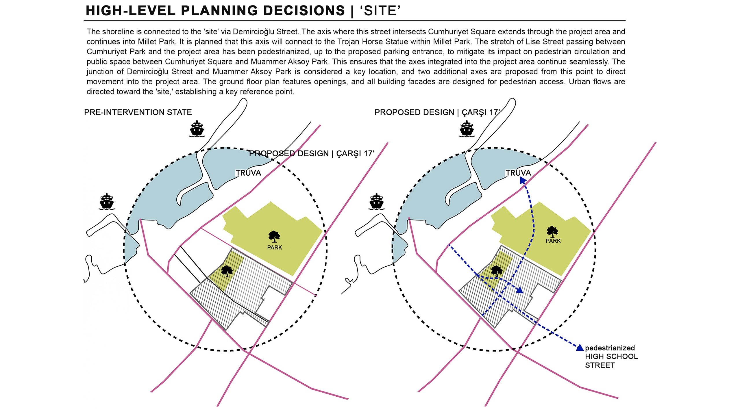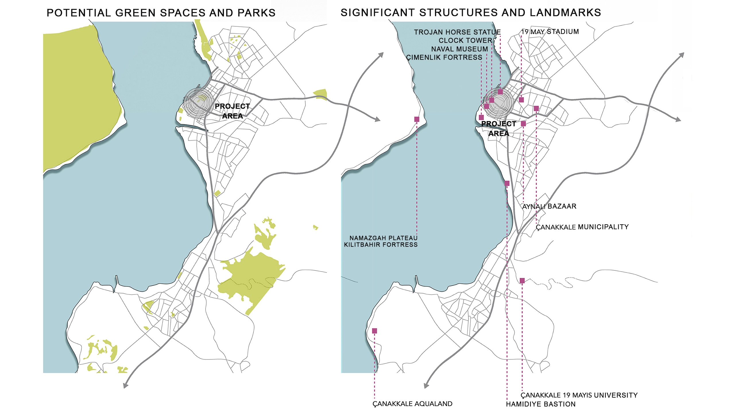 The project area is situated just northwest of the historic city center, bordered by key urban roads and close to the main harbor. Surrounded by active public parks, boulevards, and the city’s main square, the site holds both strategic and symbolic significance in the urban fabric.