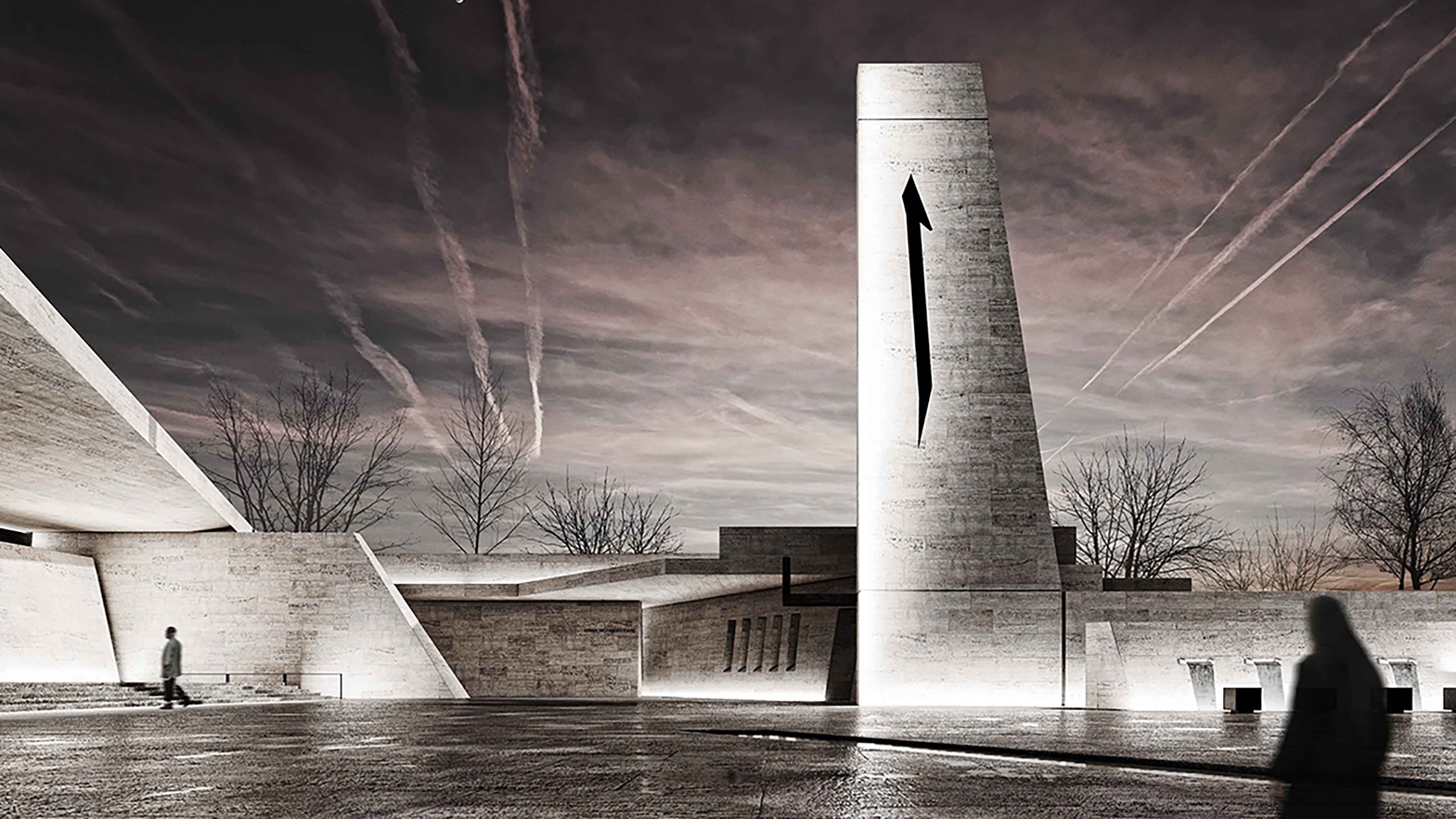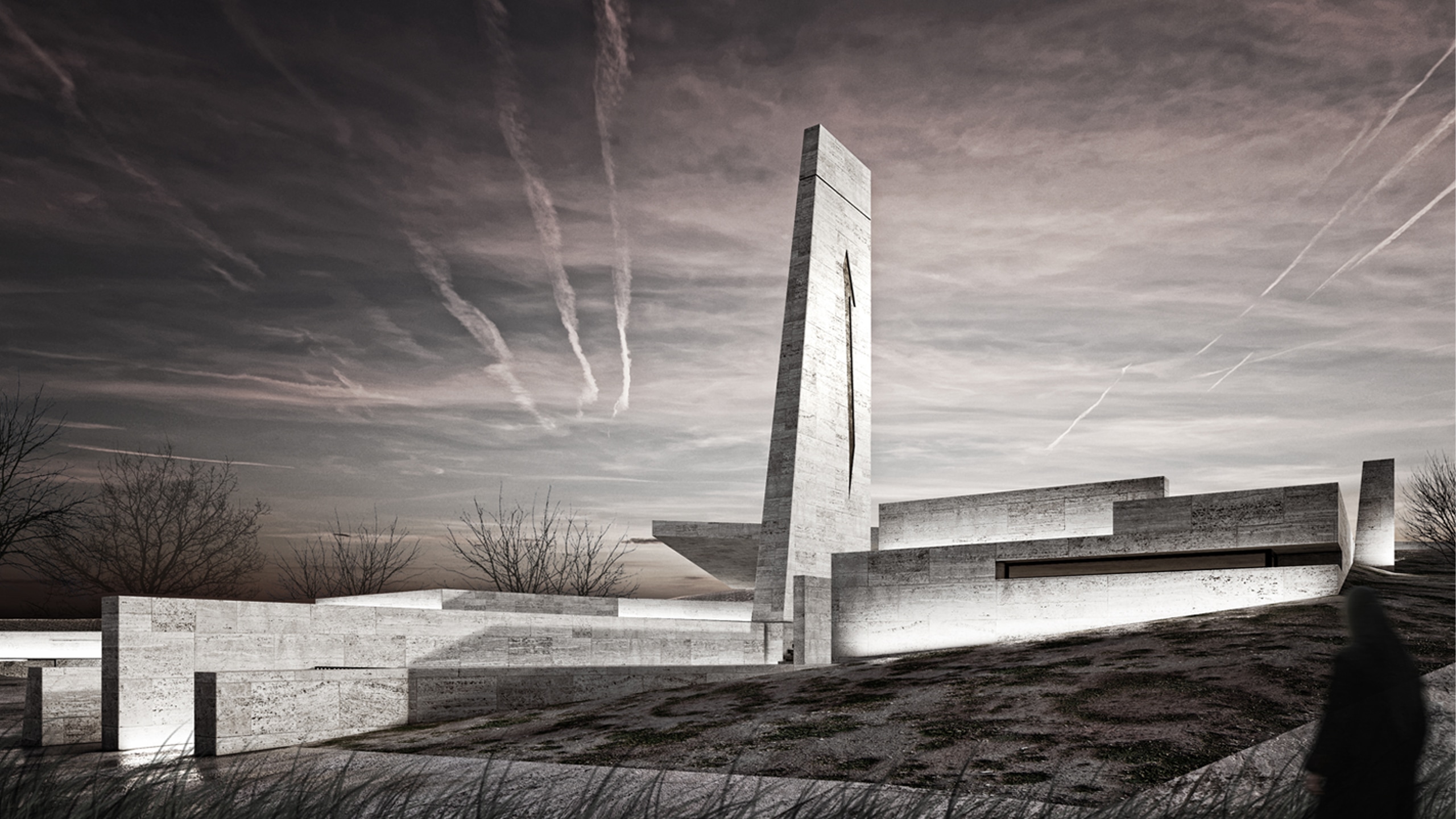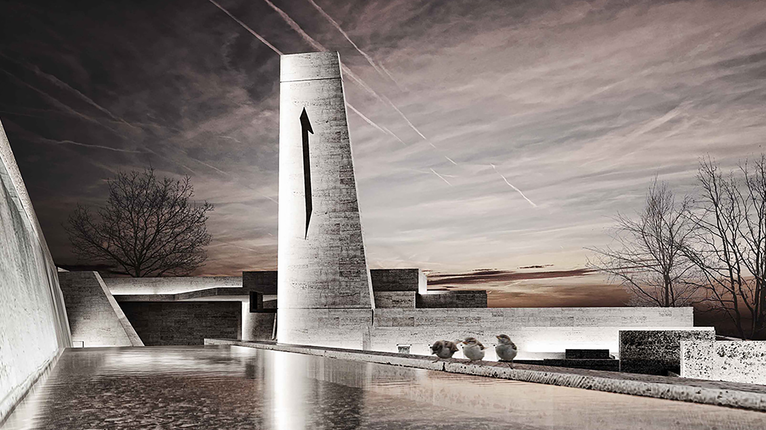 A canopy structure connects all the volumes, sheltering the spaces and symbolizing unity. Its upward-folding edge gestures toward the sky, embodying the vertical aspiration of the spiritual journey.