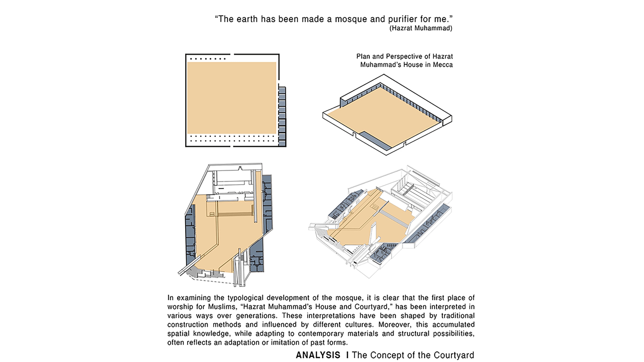 Ultimately, the mosque becomes more than a building: it is a breathing piece of land, shaped by human rituals and rooted in Islamic values of simplicity, humility, and community. Its design merges the spiritual with the social, the traditional with the contemporary.