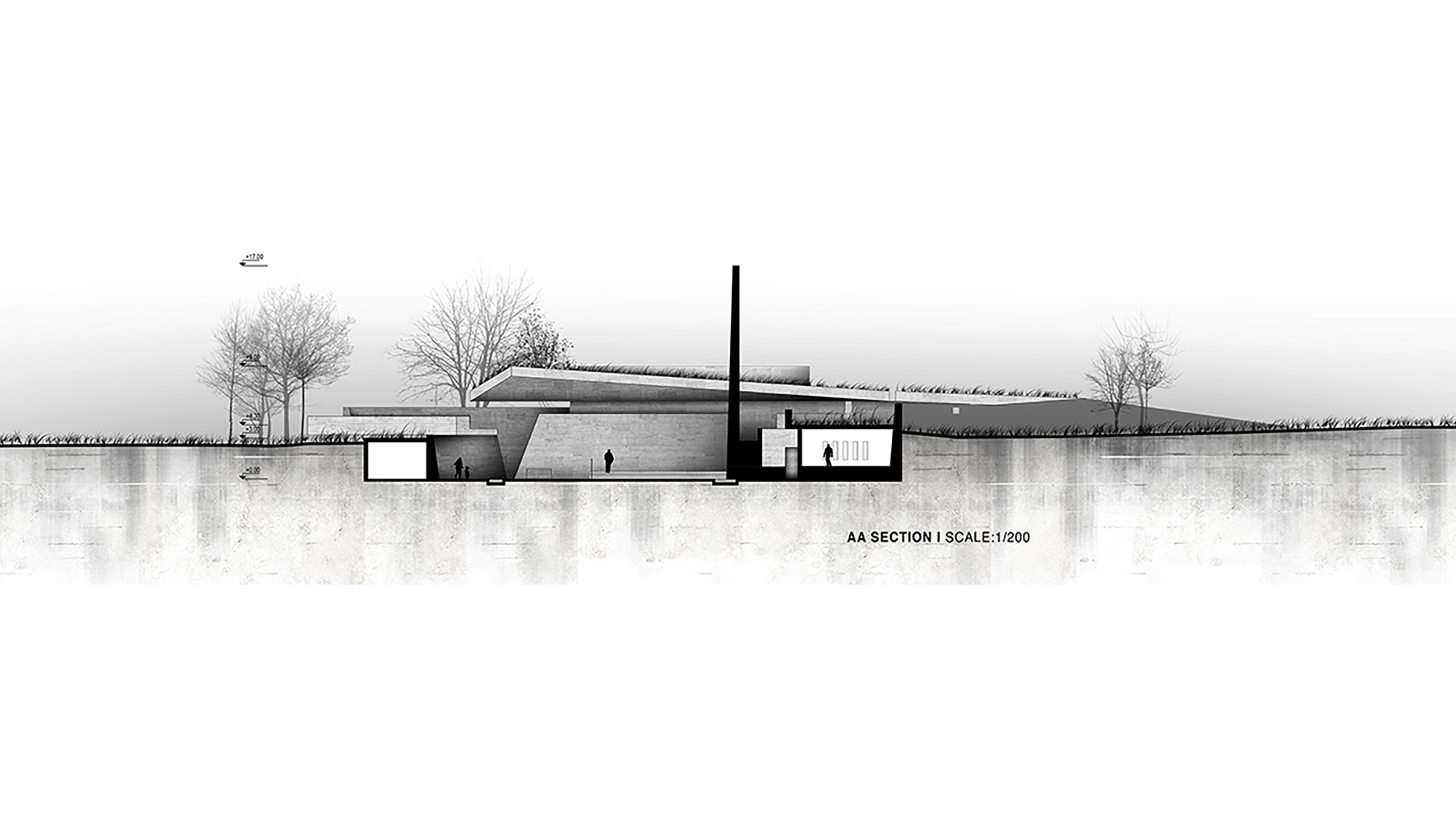 These elements are partially embedded into the sloping terrain, promoting a gentle integration with the land and encouraging continuous use throughout the day.