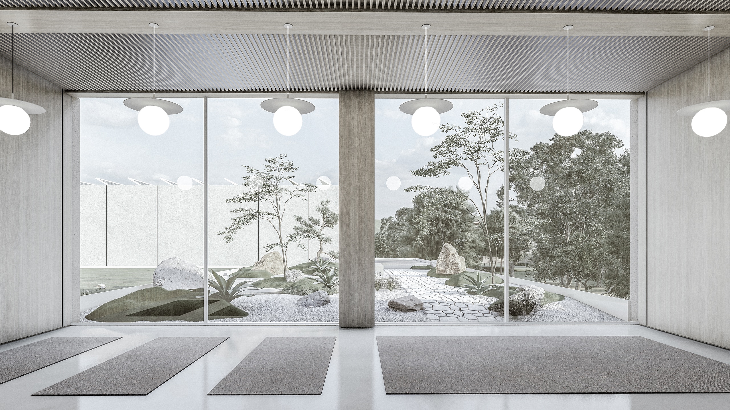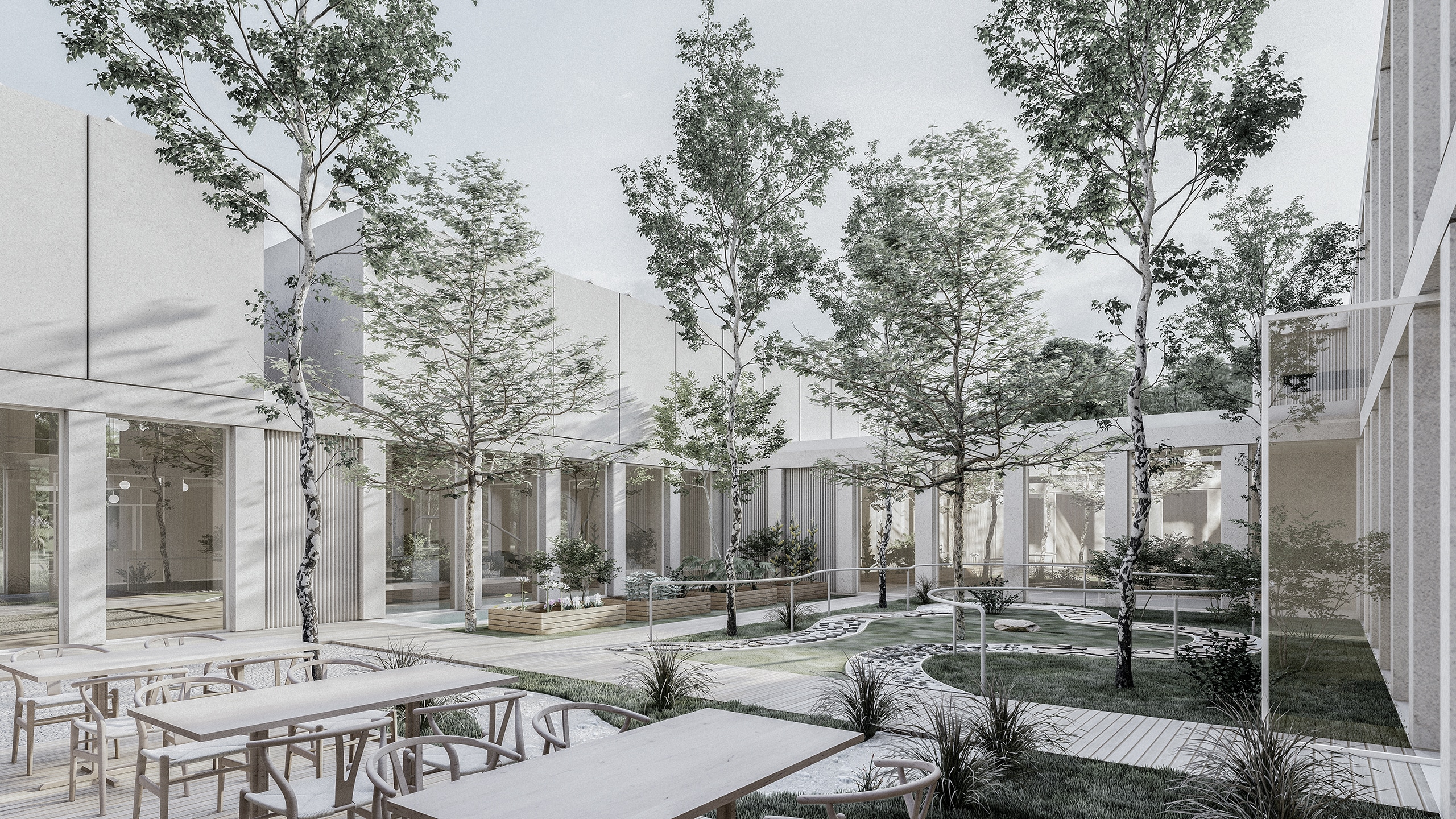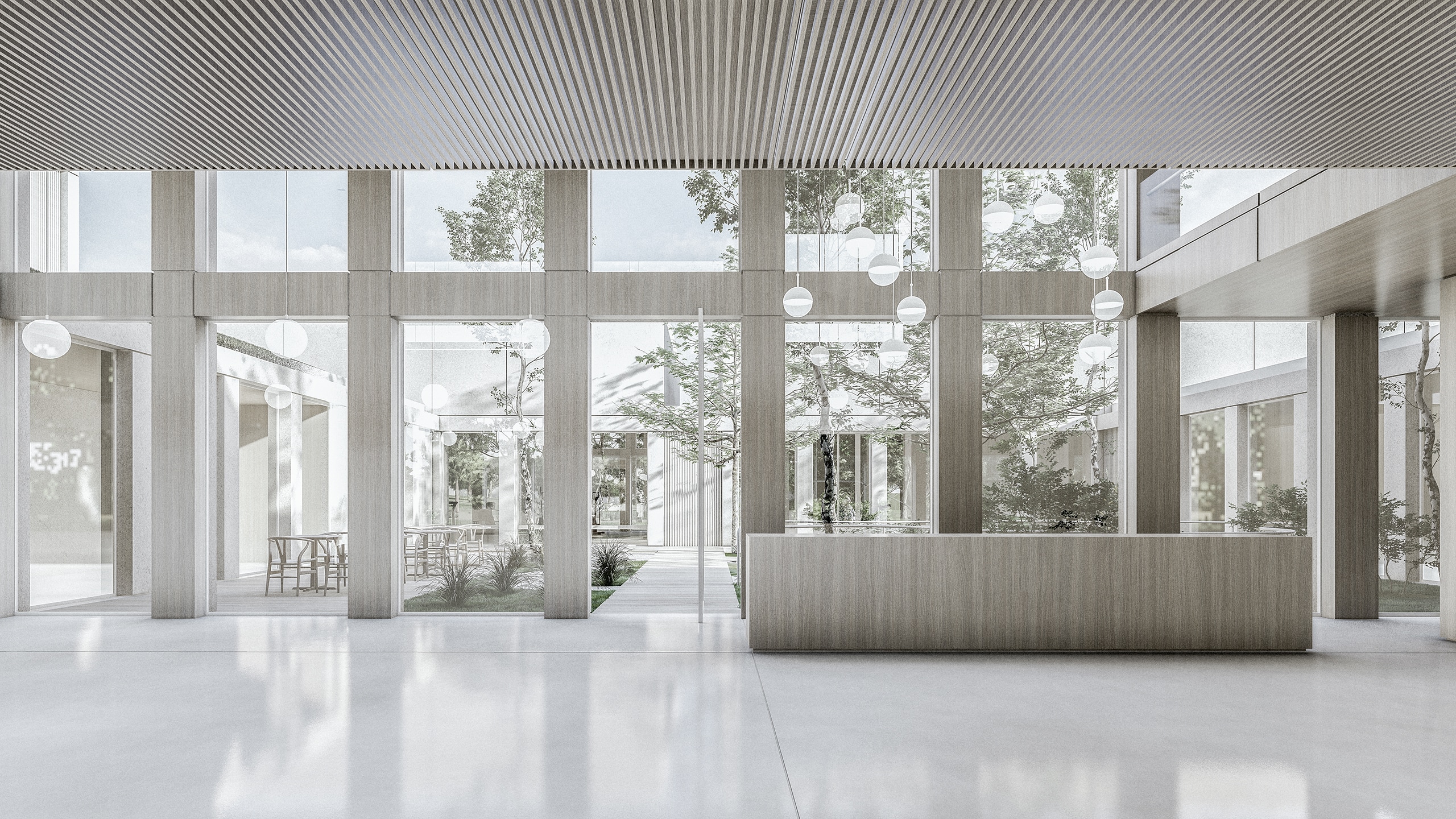 The building’s design fosters an interactive relationship between interior and exterior spaces, centered around a courtyard-garden that enhances user experience through natural light, air flow, and visual openness. This spatial strategy is further supported by the inclusion of healing and therapeutic landscape elements: