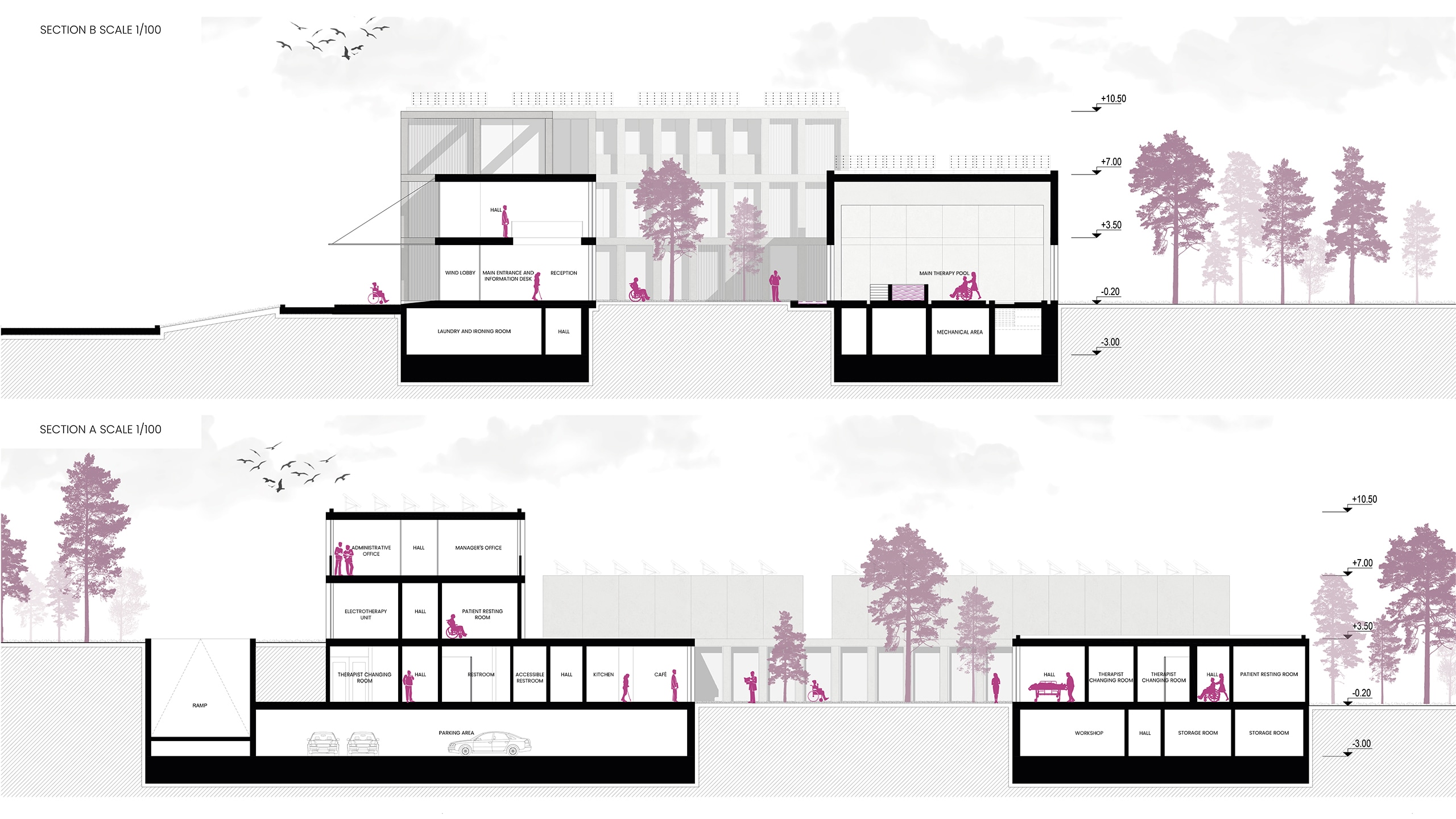 The Physiotherapy and Hydrotherapy Center redefines the standards of therapeutic architecture by integrating user-focused design, sustainable technologies, and regional architectural identity.