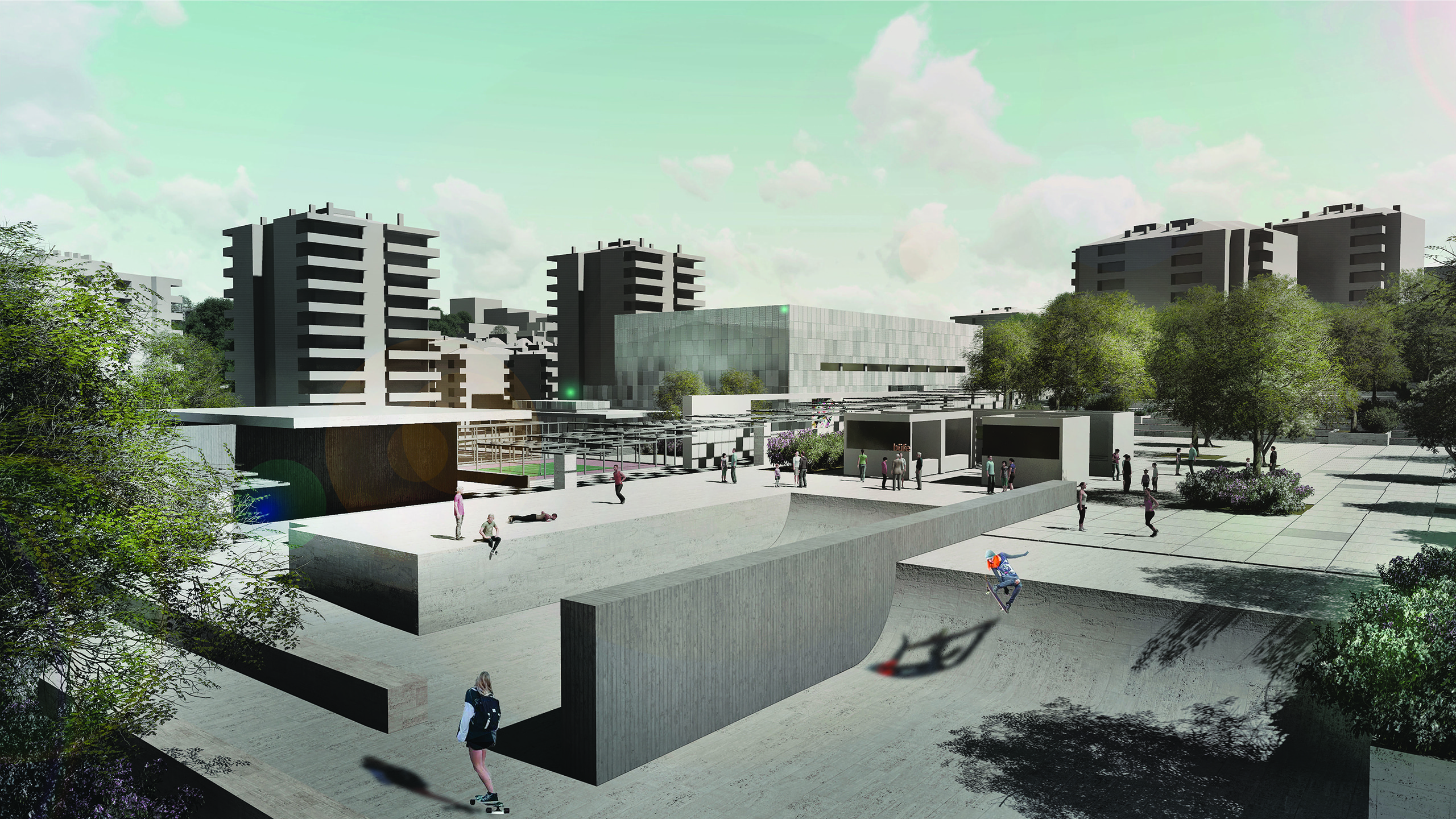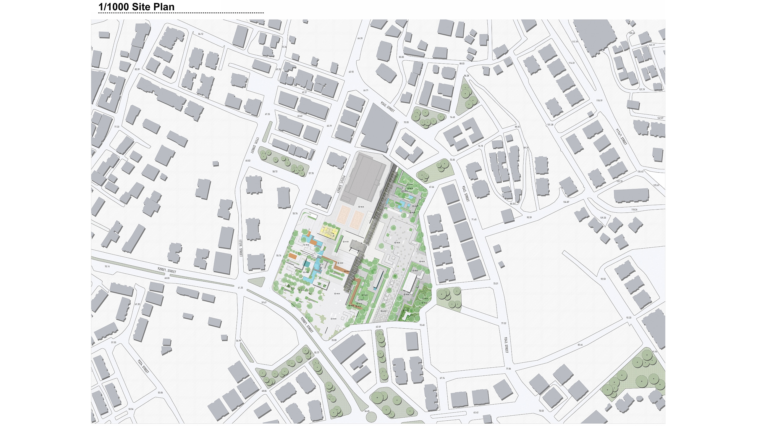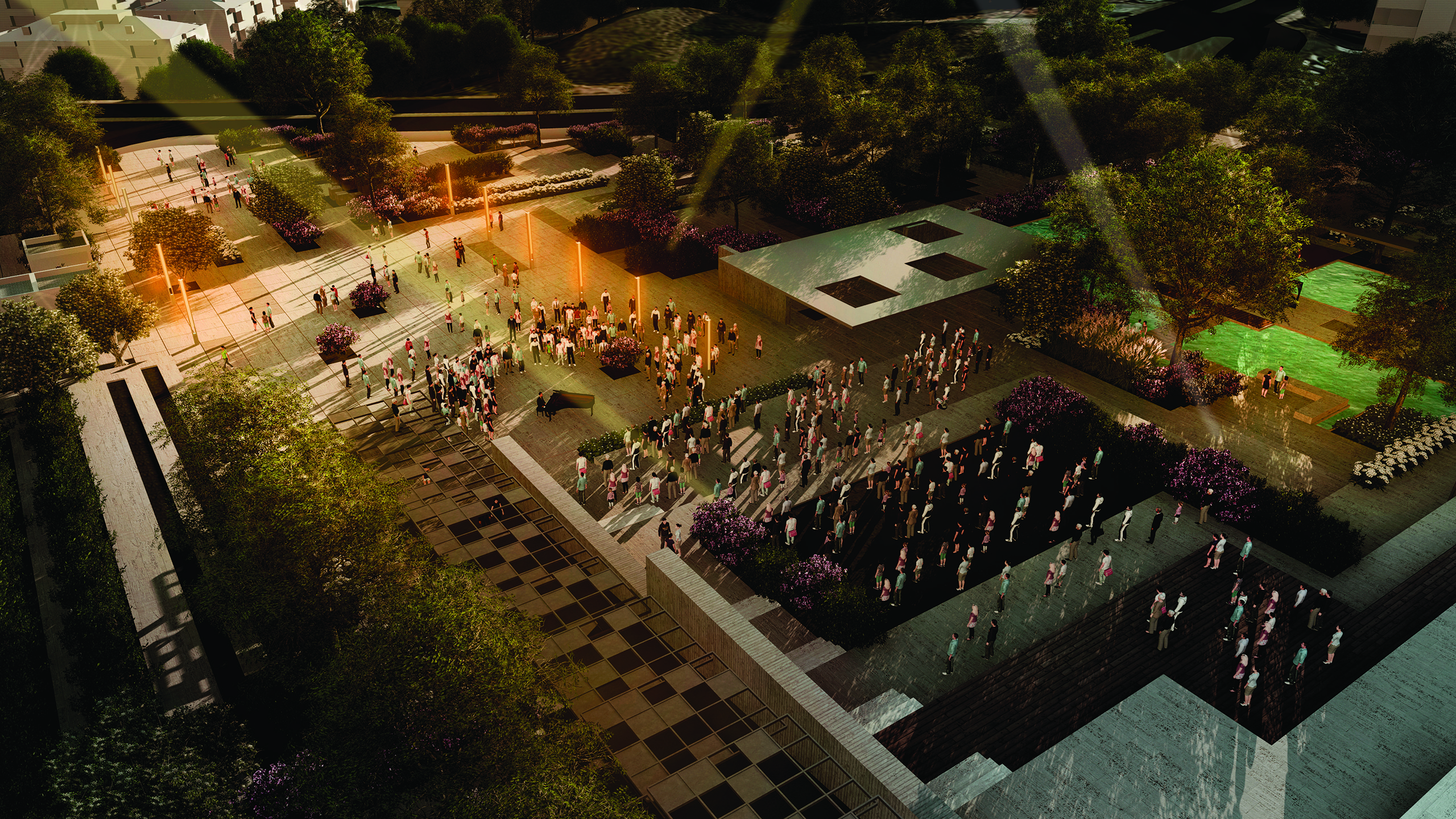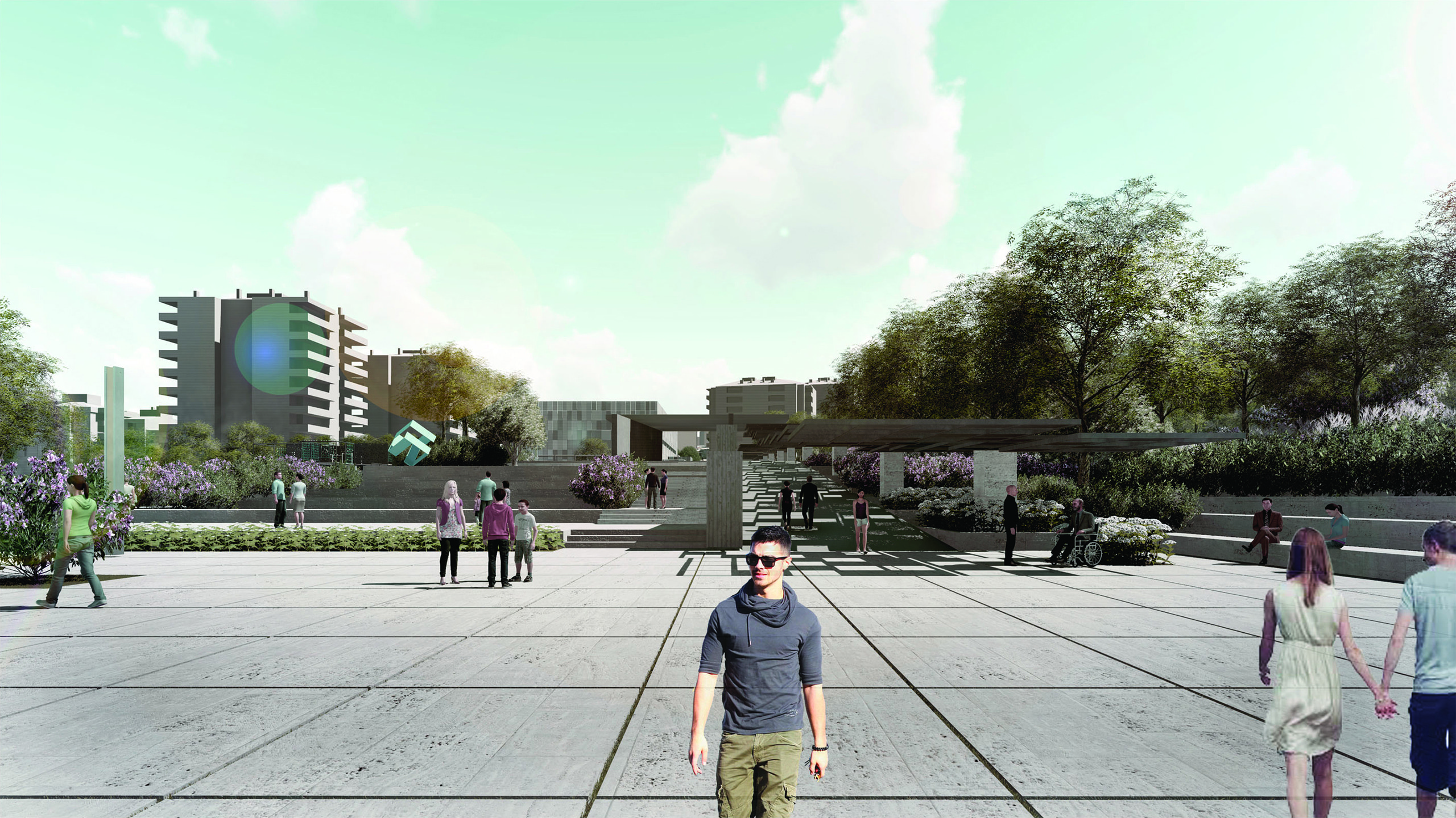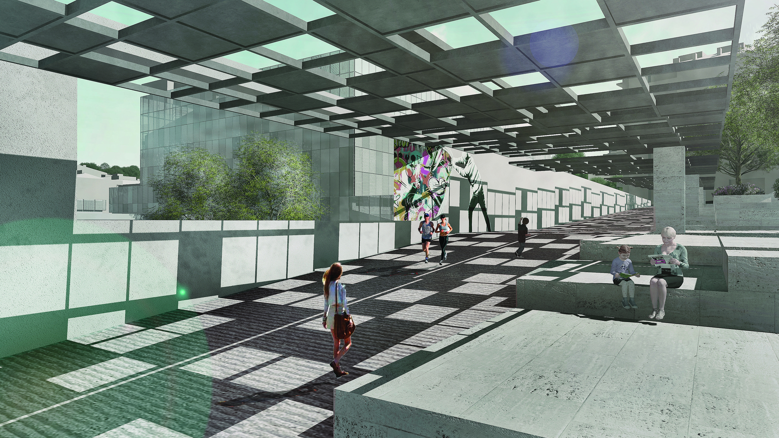 A central axis, supported by a ramp and canopy system, serves as the spine of the project. This strong north-south connector links neighborhoods and distributes various programmatic elements along its length. Circulation routes are barrier-free and universally accessible, ensuring inclusivity for all users.