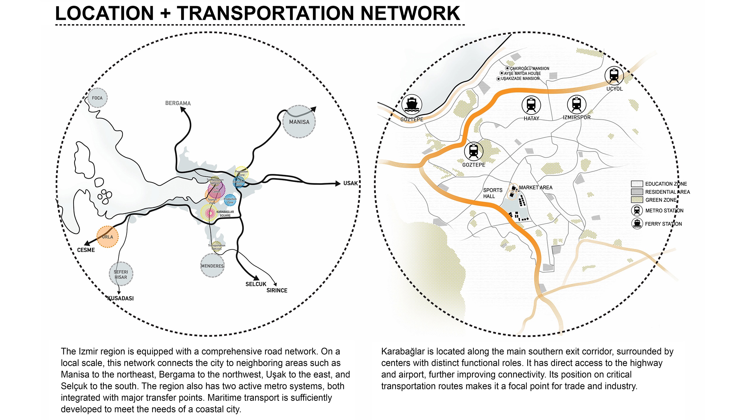 Izmir, Turkey’s third-largest city, is a historic and strategic urban hub with rich ecological and cultural layers. Karabaglar, one of its oldest districts, is surrounded by dynamic urban zones and sits at a key transportation axis: offering direct connections to the ring road, airport, and inner-city metro lines. This positions it as a prime location for a new civic and recreational nucleus.