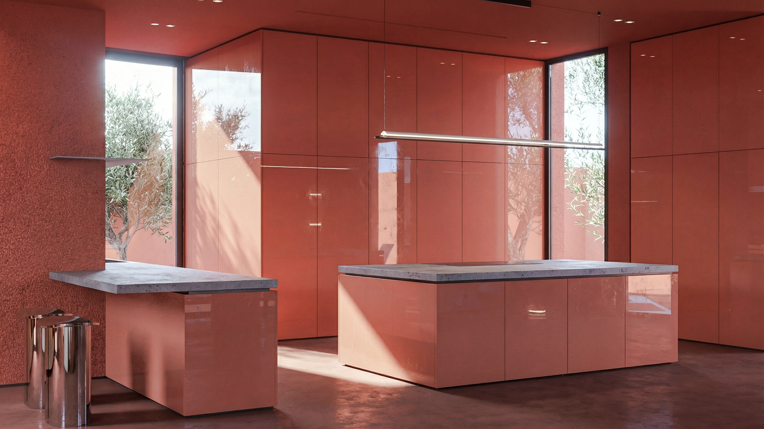 Materials such as micro-concrete, natural plaster, and matte metal details were carefully selected to express texture in a calm and cohesive manner. This limited material palette enhances the tactile experience while maintaining visual clarity.